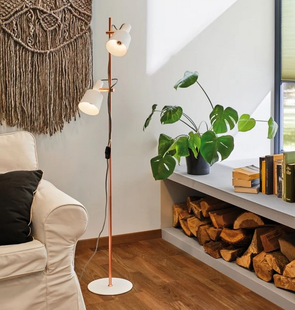 Neordic Haldar Stehleuchte im nordischen Design Weiß/Kupfer