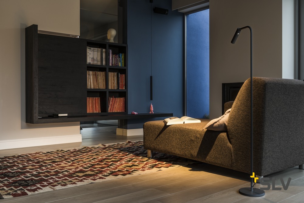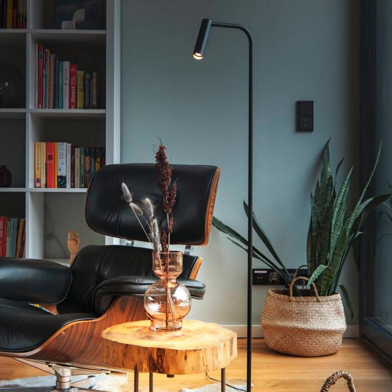 Elegante schlanke LED Stehleuchte & Leseleuchte in schwarz