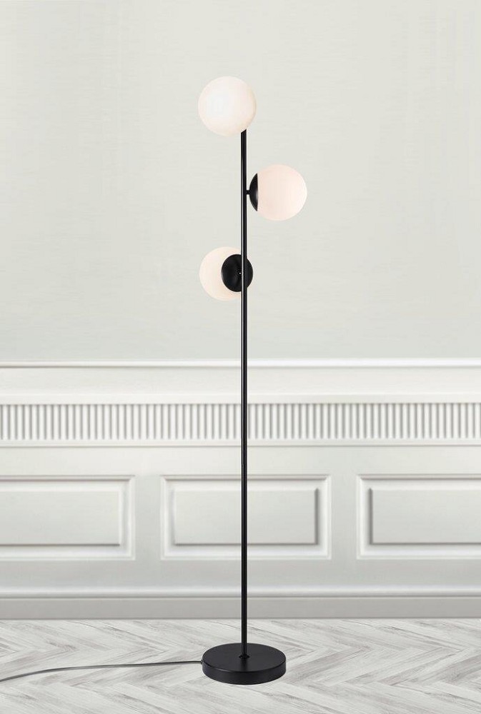 Die Stehleuchte Lilly ist eine sehr dekorative Lampe mit 3 Lichtquellen, die Schlichtheit und Eleganz auf besonders schöne Weise verbindet. Es entsteht eine einleuchtende Leichtigkeit zwischen dem minimalistischen Gestell und den eleganten leuchtenden Glaskuppeln, bei der das opalweiße Glas ein warmes und angenehmes Licht hindurchlässt. Die Kombination des strengen Gestells und der leuchtenden Glaskuppel aus opalweißem Glas, führt zu einer eleganten und stilvollen Stehleuchte. Die Platzierung der leuchtenden Glaskuppeln schafft ein vollendetes und dekoratives Ganzes und gibt zudem ein Licht, das 360-Grad im ganzen Raum abstrahlt. Bitte bestellen Sie 3 E14 Leuchtmittel dazu.