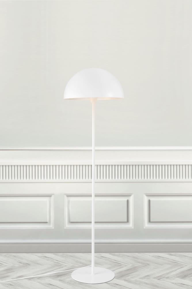 Bei dieser zeitlosen Stehlampe kommt die ganze Essenz des skandinavischen Designs zum Ausdruck. Das schlichte und runde Design zeigt sich bei dieser Stehlampe auf besonders schöne Art und Weise, wobei die Formgebung der Leuchte für eine abgerundete Optik sorgt. Der große kuppelförmige Lampenschirm steht in einem schönen Kontrast zum leichten Gestell und sorgt zugleich für visuelles Volumen und ein breites Lichtfeld. Hierdurch wird eine behagliche Beleuchtung geschaffen. Die Ellen ist eine Stehlampe mit großer Ästhetik, deren Gestalt so zeitlos erscheint, weil auf außergewöhnliche Details bewusst verzichtet worden ist und der Schirm lediglich die Gestalt einer Halbkugel aufweist. Die Außenseite ist komplett in weiß gehalten, was eine kühle Eleganz vermittelt. Das matte Finish trägt damit zu einer wunderbar warmen und gemütlichen Lichtwirkung bei, wie sie in Wohn- und Schlafräumen, wo man sich gern zurückzieht, immer sehr willkommen ist.