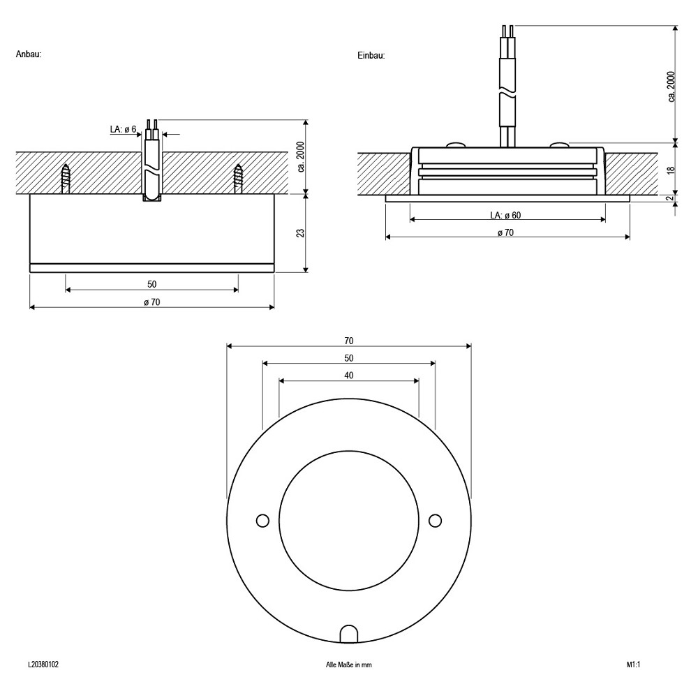LED Deckenleuchte für vielfältige Anwendungen im Innenbereich. Sowohl Effektbeleuchtungen, Raumbeleuchtung, Akzentuierte Beleuchtung und vieles mehr, lassen sich mit dieser Leuchte umsetzten. Durch das mitgelieferte Anbaugehäuse kann die Leuchte als Einbau- und Anbauleuchte verwendet werden. Zusätzliche Kosten für Leuchtmittel entfallen, da die Leistung von einem fest verbauten LED-Chip geliefert wird. Natürlich können mehrere Leuchten an ein Betriebsgerät angeschlossen werden, um verschiedene Gruppen innerhalb eines Raums schalten zu können. Da die Leuchte über 350mA betrieben wird, müssen die Leuchten in Reihe verdrahtet werden. Die Leuchte verfügt über eine 2m lange Anschlussleitung.