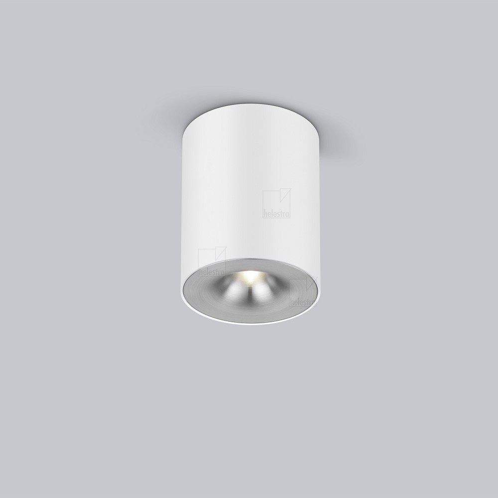 Helestra Runder LED Deckenstrahler NIO dimmbar in mattweiß  Blende aluminium eloxiert