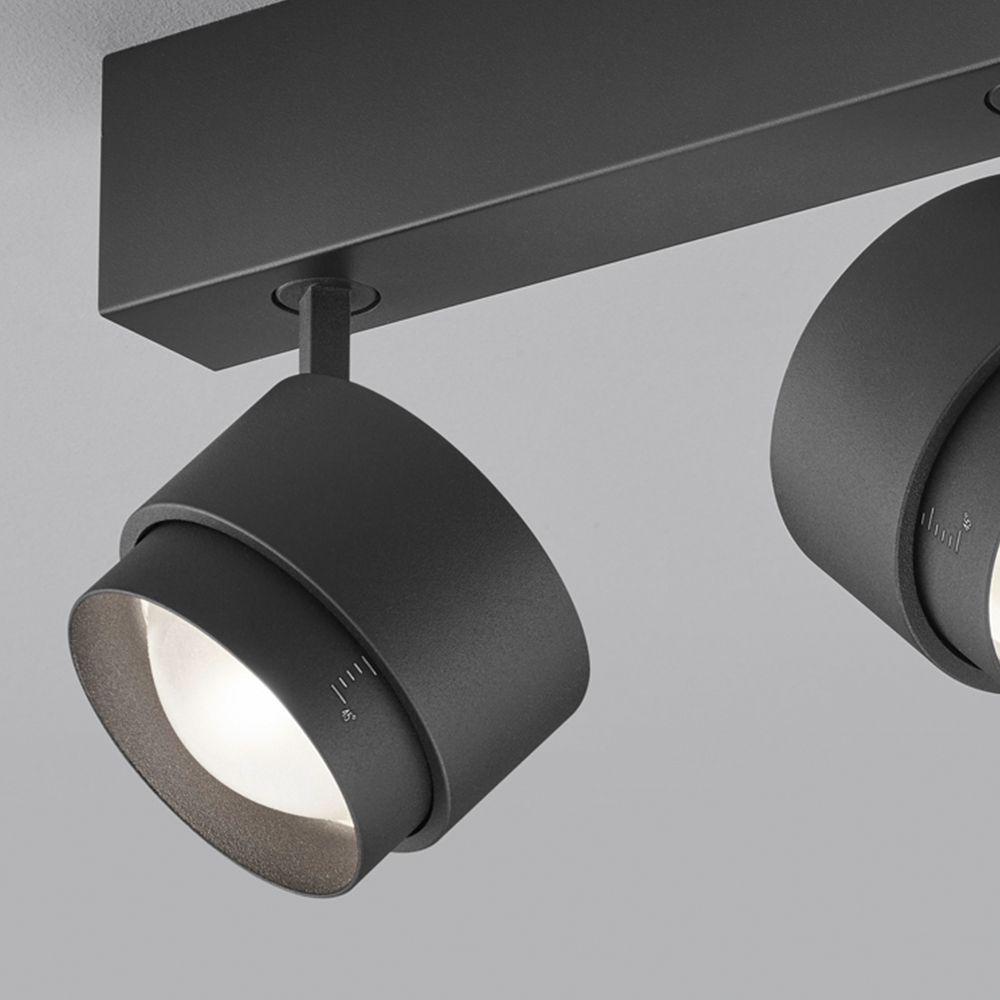 Die Deckenaufbauleuchten der Serie PONT haben einen zwischen 15°-45° fokussierbaren Lichtaustritt.