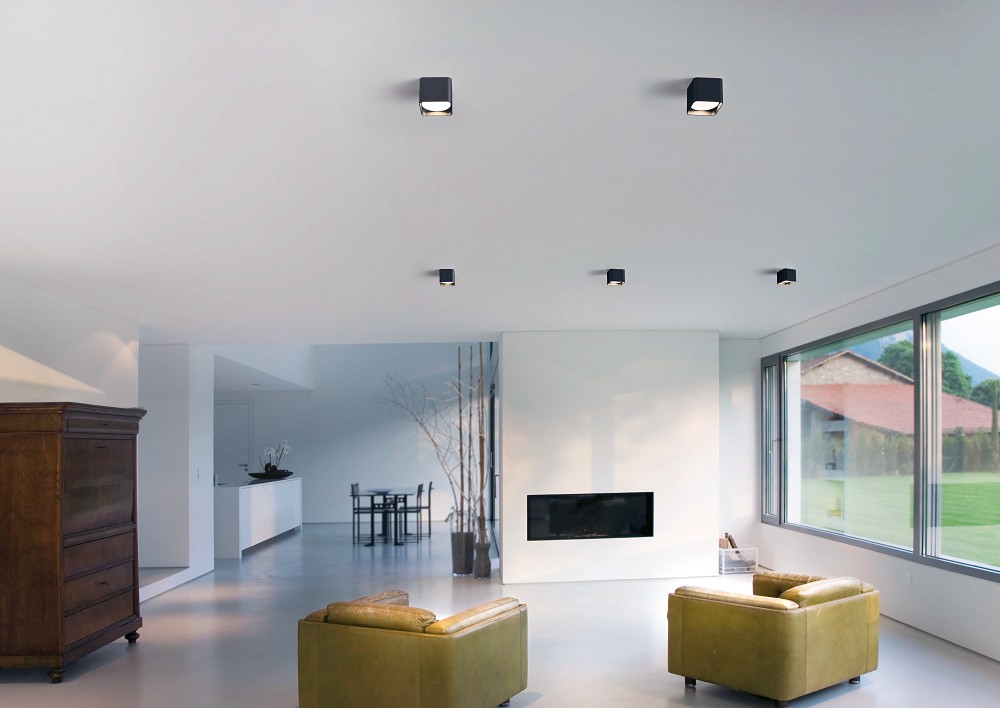 Der Deckenspot setzt die angestrahlten Bereiche dekorativ in Szene.