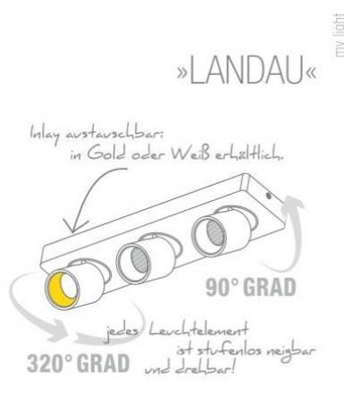 Die Strahler der Serie Landau sind bei uns in ein- bis vierflammiger Ausführung erhältlich. Optional können sie einen golfdarbenen Aufsatz für den Reflektor bestellen und der Leuchte und dem Licht somit ein leicht goldiges bernsteinfarbenes Esprit verleihen.