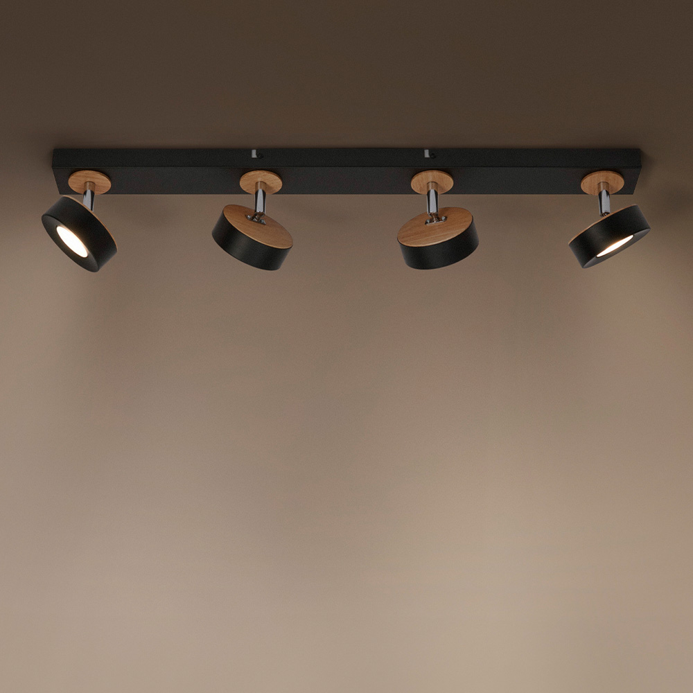 Das Gehäusematerial besteht aus Metall und Holz. Die Leuchtenköpfe sind verstellbar, so dass Sie das Licht in die gewünschte Richtung lenken können.