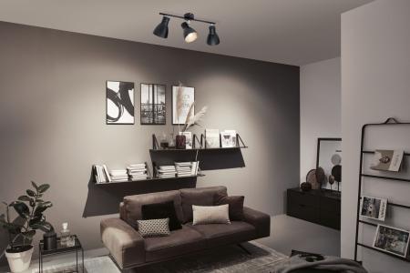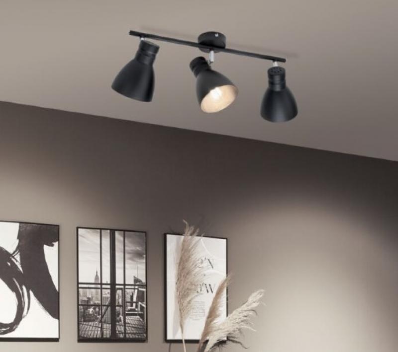 Das dreiflammige Spotlight der Serie Davy in der Farbe Schwarz eröffnet vielfältige Einsatzmöglichkeiten und fügt sich mit seinem schicken Trenddesign im Industrielook nahtlos in jede Wohnsituation ein. Das Leuchtmittel ist frei wählbar. Es lassen sich beliebige Leuchtmittel mit E27-Sockel und einer Leistung von maximal 10 Watt einsetzen.