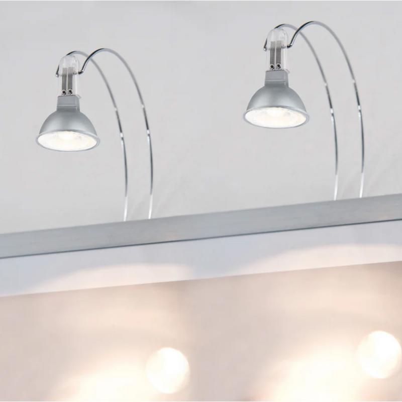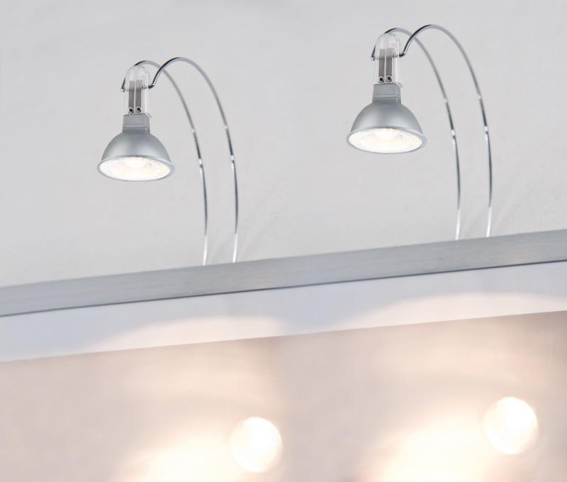 Die Spiegelleuchte LED II sorgt für eine gleichmäßige Beleuchtung Ihrer Spiegelflächen. Sie wird direkt an der Wand befestigt und die beiden Spotköpfe lassen sich individuell einstellen, sodass eine optimale Ausleuchtung garantiert ist. Passende Leuchtmittel mit energieeffizienter LED-Technik sind im Lieferumfang enthalten.