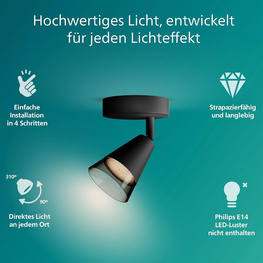Richte das Licht genau dorthin, wo Du es brauchst. Dieser praktische Philips Spot überzeugt mit modernem Design, langlebigen Materialien und einfacher Montage dank ClickFix.