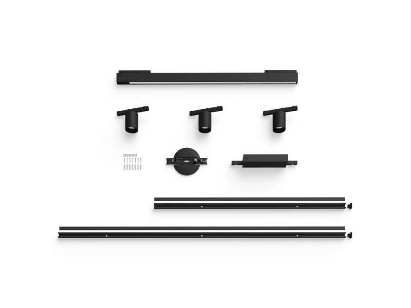 Die Philips Hue Perifo ist eine moderne und ausdrucksstarke Deckenleuchte, die eine entspannte Atmosphäre in jedem Raum schaffen kann. Dieses Schienenbeleuchtungsset für die Decke in Schwarz enthält drei Zylinderspots, eine gerade Lightbar, eine 1 Meter lange Schiene, eine 1,5 Meter lange Schiene sowie ein zwischen den beiden Schienen befindliches Netzteil.