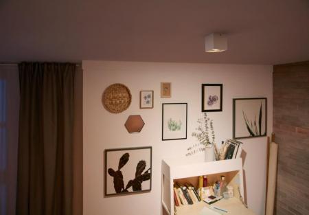 Würfelförmiger moderner LED Deckenstrahler schwenkbar mit Warm Glow in Weiß