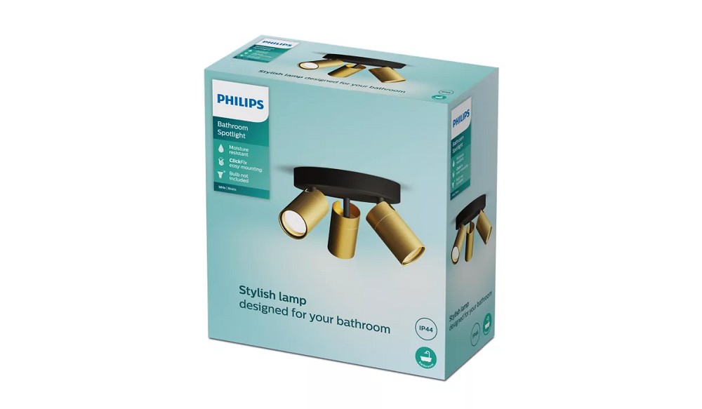 Fazit: Der Philips Deckenstrahler mit 3× GU10-Fassungen kombiniert praktische Flexibilität mit stilvollem Design. Dank IP44 ist er speziell für den Einsatz im Badezimmer entwickelt und sorgt dort für helles, langlebiges und energiesparendes Licht.