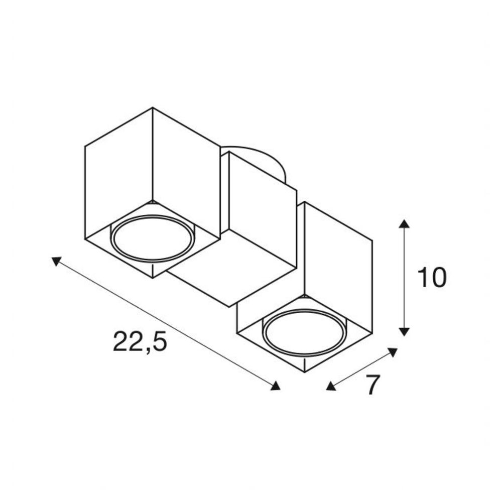 Die würfelförmige Deckenaufbauleuchte ALTRA DICE aus Aluminium und Stahl verfügt über zwei Leuchtenköpfe mit je einseitiger Aussparung zwecks Aufnahme des Hochvolt Halogenleuchtmittels. Verfügbar in weißer, schwarzer oder silbergrauer Gehäusefarbe ist der dreh- und schwenkbare Aufbauspot, zur Aufnahme von Hochvolt Halogenleuchtmitteln des Typs GU10, fertig für den direkten Anschluss an 230V Netzspannung.