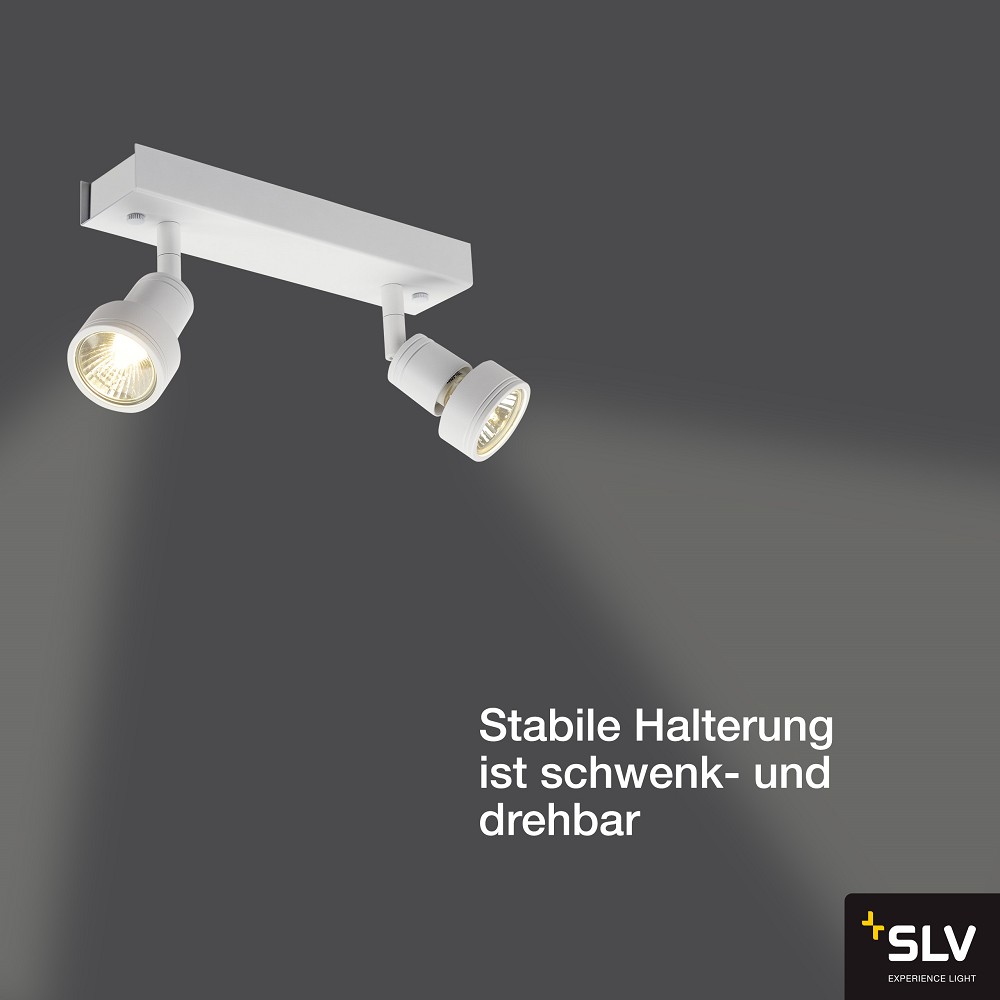 Wand- und Deckenleuchte der PURI Serie bei der die je nach Version ein bis drei Leuchtenköpfe dreh- sowie schwenkbar an der leuchtenfarbenden Rosette montiert sind. Die aus Aluminium gefertigte Leuchte ist durch den verbauten GU10 Sockel für Halogen- sowie LED-Leuchtmittel geeignet. Für Leuchtmittel mit 5cm Durchmesser befindet sich ein Dekoring zum aufsetzten auf das Leuchtmittel im Lieferumfang. Der elektrische Anschluss der in mehreren Farbversionen verfügbaren Leuchte erfolgt direkt an 230V Netzspannung.