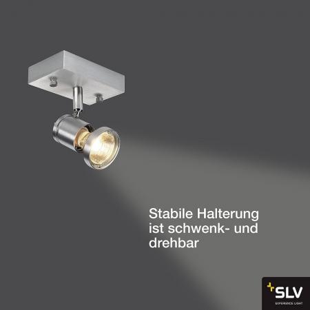 Die ASTO Wand-und Deckenleuchte ist aus Aluminium gefertigt und verfügbar in gebürsteter Oberflächenlackierung. Die gewünschten GU10 Halogen-, LED oder Energiesparleuchtmittel werden direkt in die dafür vorgesehene GU10 Hochvoltfassung eingedreht und können optional mit einem im Lieferumfang der Leuchte enthaltenen Zierring versehen werden. ASTO Wand- und Deckenleuchte ist fertig für den direkten Anschluss an 230V Netzspannung.