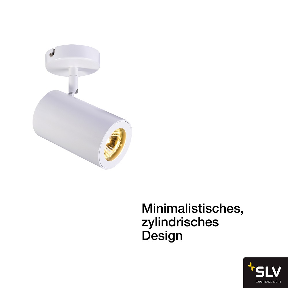 Die puristische Wand- und Deckenaufbauleuchte ENOLA_B besteht aus einer Aluminium und Stahl Konstruktion und ist wahlweise verfügbar in den Gehäusefarben schwarz, weiß, messing und silbergrau. Der freigestellte Leuchtenkopf ist sowohl dreh- als auch schwenkbar. Durch die eingebaute GU10 Hochvoltfassungen ist der einflammige ENOLA_B fertig für den direkten Anschluss an 230V Netzspannung.