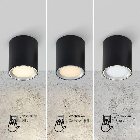 Montierter LED-Deckenspot mit integrierten LEDs und 3-Schritt Moodmaker™-Funktion. Wechseln Sie mit einem herkömmlichen Schalter zwischen 3 verschiedenen Lichtszenen.