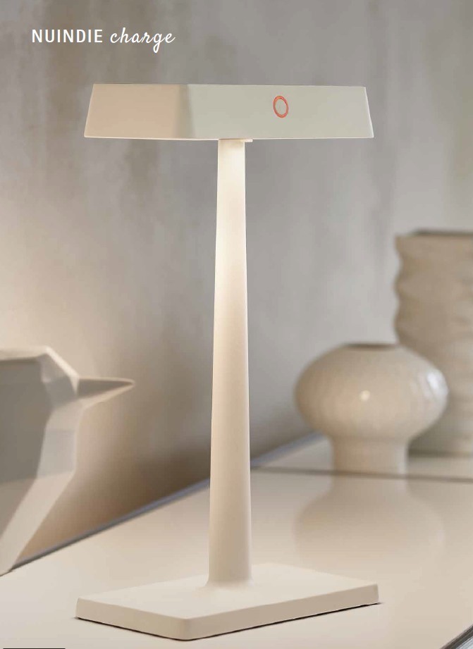 Durch ihre hochwertige Verarbeitung und das solide Gewicht hält sie vielem stand – auch wenn es bei der Gartenparty mal hoch hergeht. Ihr warmweißes Licht verströmt ein behagliches Ambiente und ist stufenlos dimmbar. Falls dann doch mal der Akku des Smartphone leer gehen sollte, kann dieser Auf der Oberseite der NUINDIE CHARGE direkt geladen werden.
