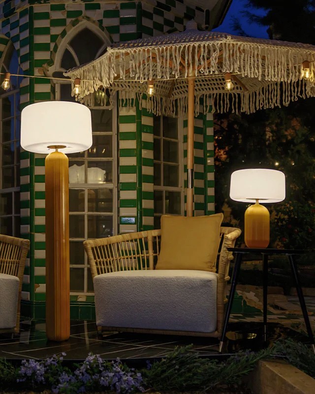 Die Tischleuchte Phoebe 45 wurde entworfen, um intime und elegante Lichtakzente zu setzen, bei denen das Licht selbst Teil des Ambientes wird. Mit ihrer Art-Déco-Optik verleiht sie Innen- und Außenbereichen Charakter und Raffinesse.