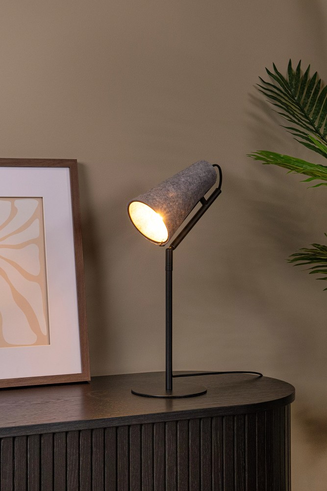 Die Tischlampe überzeugt durch ihre reduzierte, geometrische Form und die Kombination aus Filz und Metall, die eine moderne und zugleich natürliche Wirkung erzeugt. Der konische Schirm aus Filz sorgt für eine weiche Lichtverteilung und reduziert Blendungen, wodurch sie besonders gut als Arbeits- oder Leselicht geeignet ist. Der schlanke Aufbau verleiht ihr eine elegante Silhouette, die sich unauffällig in unterschiedliche Einrichtungsstile integrieren lässt. Durch die Bedienung über den Kabelschalter ist sie besonders alltagstauglich und schnell einsetzbar. Die klare Gestaltung im Japandi Stil verbindet Funktionalität mit ruhiger Ästhetik.
