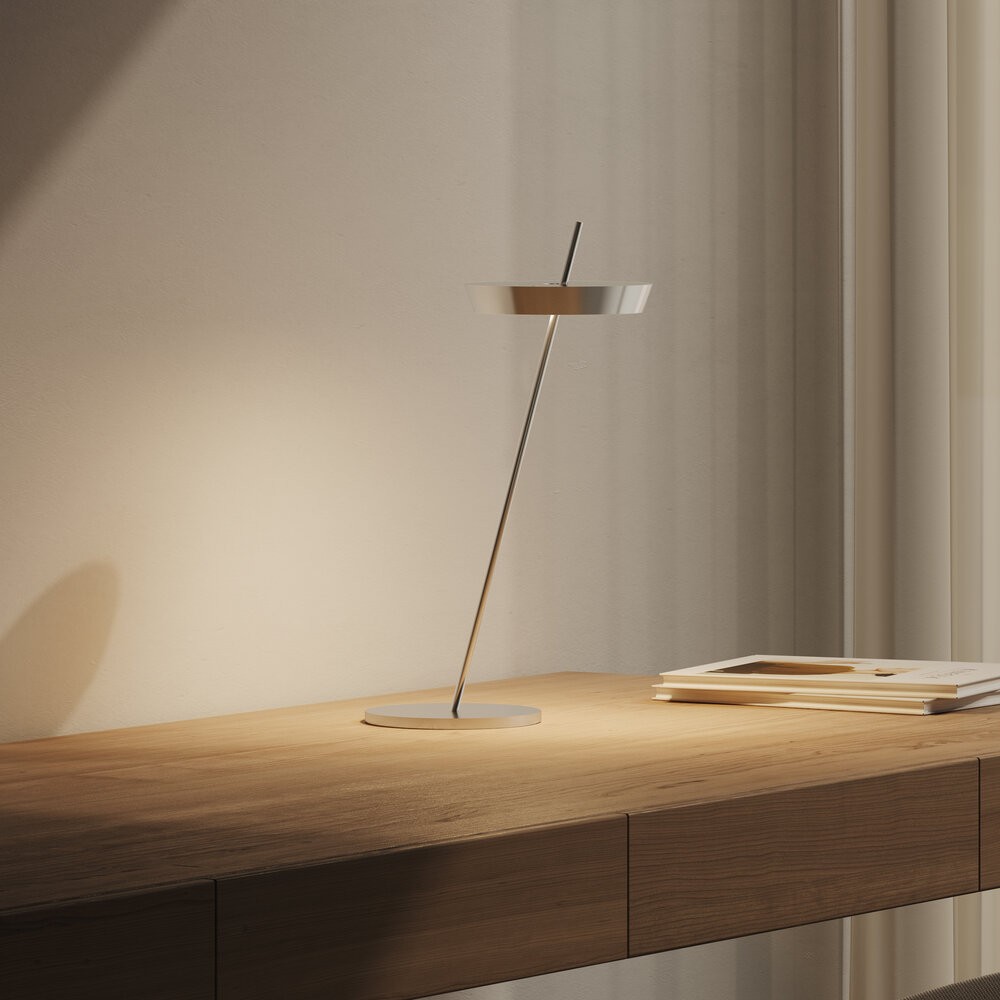 Genial diagonal: Mit ihrem klaren architektonischen Design ist die Tischleuchte Mahina ein Highlight für jedes puristisch gestaltete Wohnambiente. In 3 hochwertigen glänzenden Farben verfügbar – Keramikschwarz, Weiß und Chrom – fügt sie sich in jede Umgebung harmonisch ein.