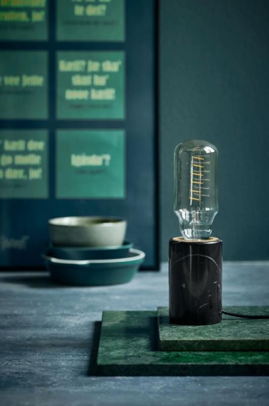 Diese Designerleuchte hat ihre Wurzeln in der rohen Natur und spiegelt eine kontrastreiche Beziehung in Form einer stilvollen, farbigen Marmoroberfläche und einer warmen dekorativen Lichtquelle wieder. Marmor ist seit Jahrhunderten ein beliebtes natürliches Material, das stets einzigartige Farben, Muster und Strukturen aufweist.