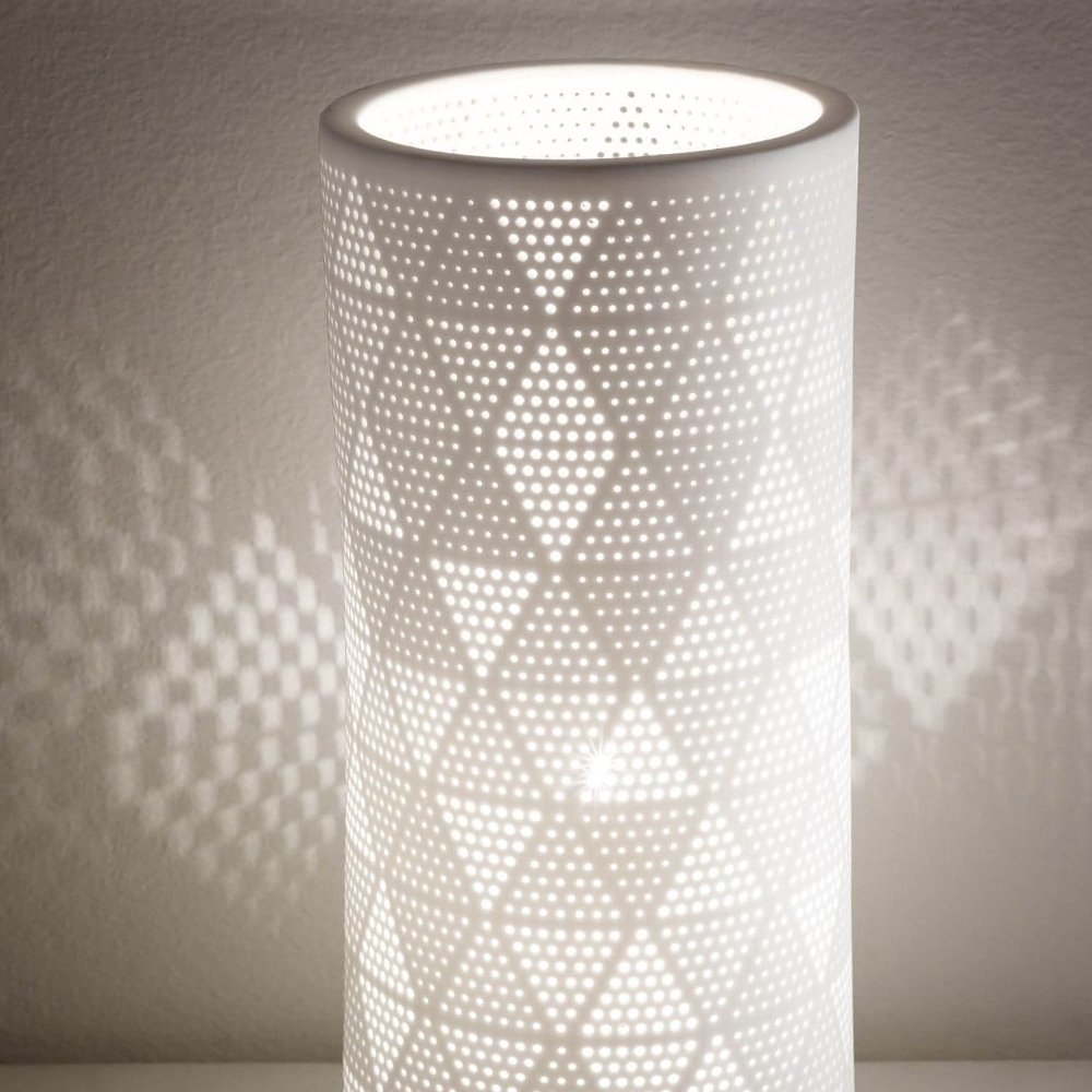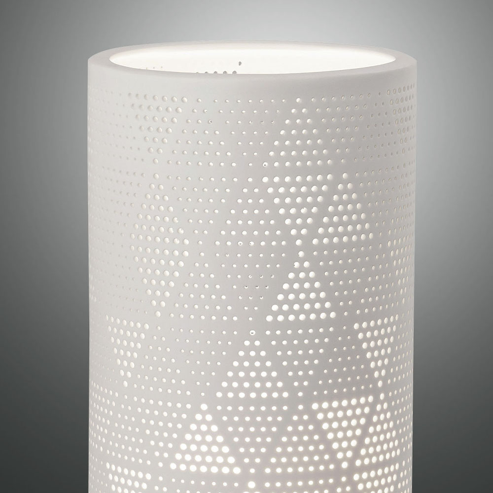 Die Fabas Luce Tischleuchte Micol in Weiß ist eine ausdrucksstarke, handgefertigte Keramik-Tischleuchte mit einer filigranen Struktur und einer effektvollen Lichtverteilung. Sie spendet ein weiches Licht. Die Micol Tischleuchte ist mit einer E27 Fassung ausgestattet. Somit haben sie freie Wahl des E27-Leuchtmittels für eine individuelle Beleuchtung.