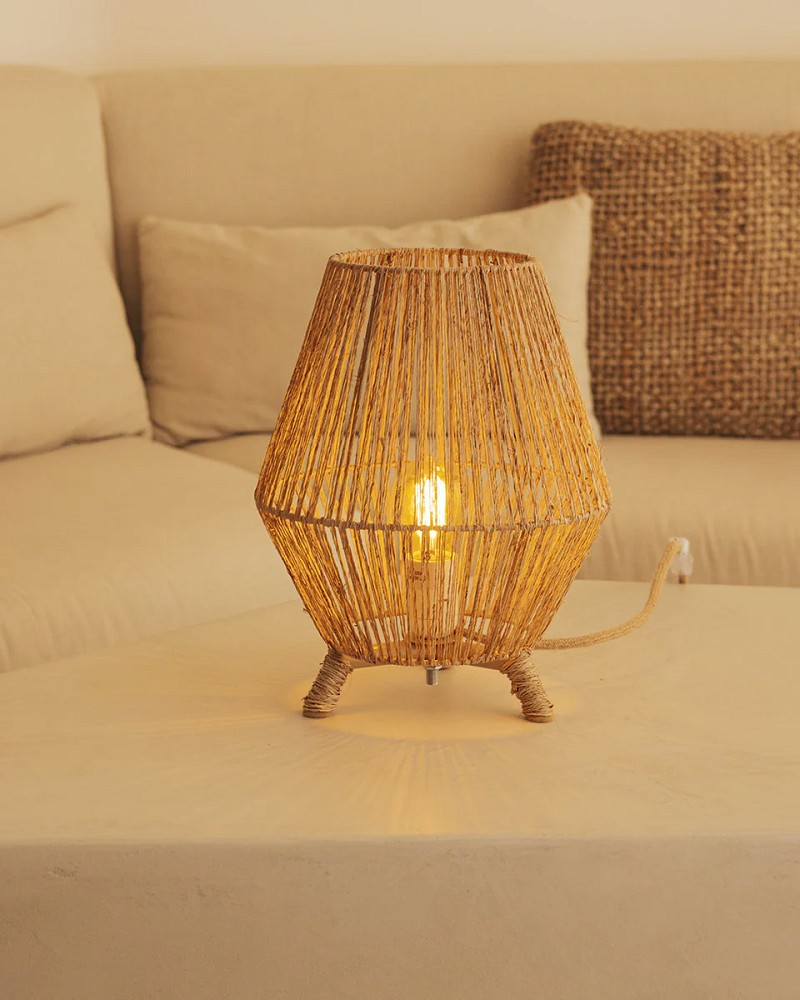 Die dekorative Lampe Sisine 30 ist aus Naturfasern gefertigt. Diese Lampe ist eine schöne Ergänzung, um Innen-Räume mit einem Hauch von Natur zu beleuchten.