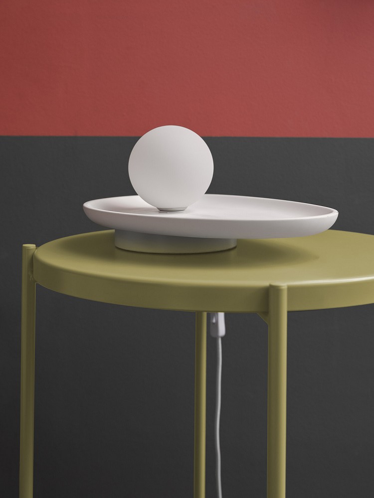 Mobile Preview: Osram Tischleuchte Decor Plaster Nest aus Gips in Weiß mit G9 Fassung - mit matter Glaskugel & Textilkabel