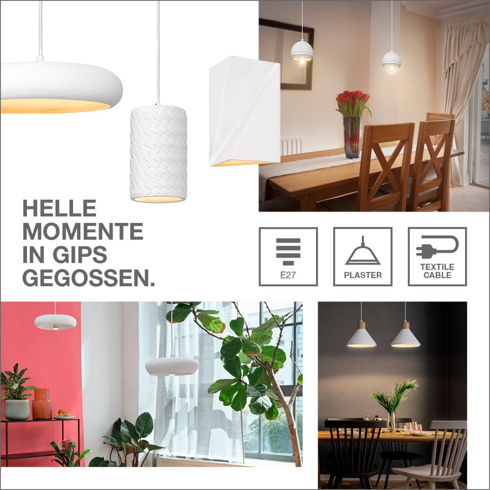 Osram Tischleuchte Decor Plaster Nest aus Gips in Weiß mit G9 Fassung - mit matter Glaskugel & Textilkabel