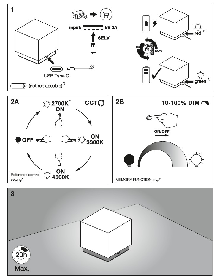 Integrierter Lithium-Akku, aufladbar per USB-Kabel Typ C 1 M im Lieferumfang enthalten