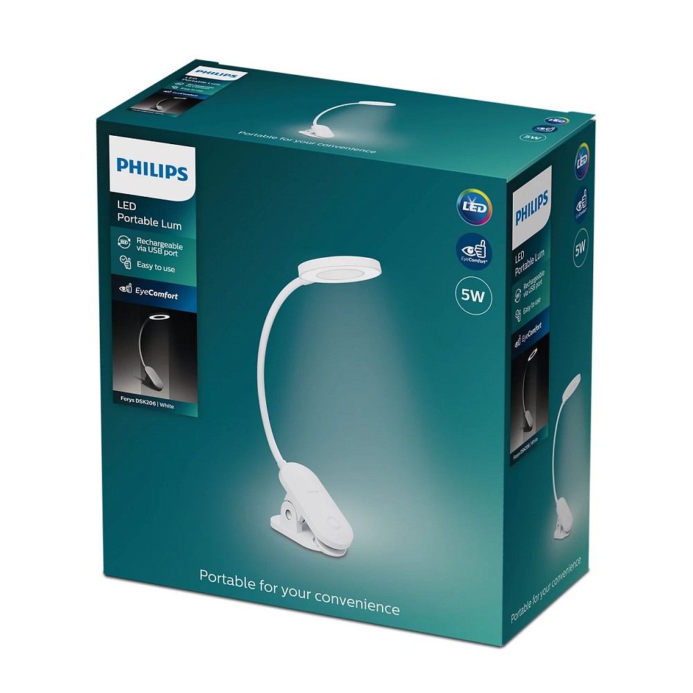Philips Forys Clip tragbare Tischleuchte, 5W, kaltweiß, weiß, inkl. Akku