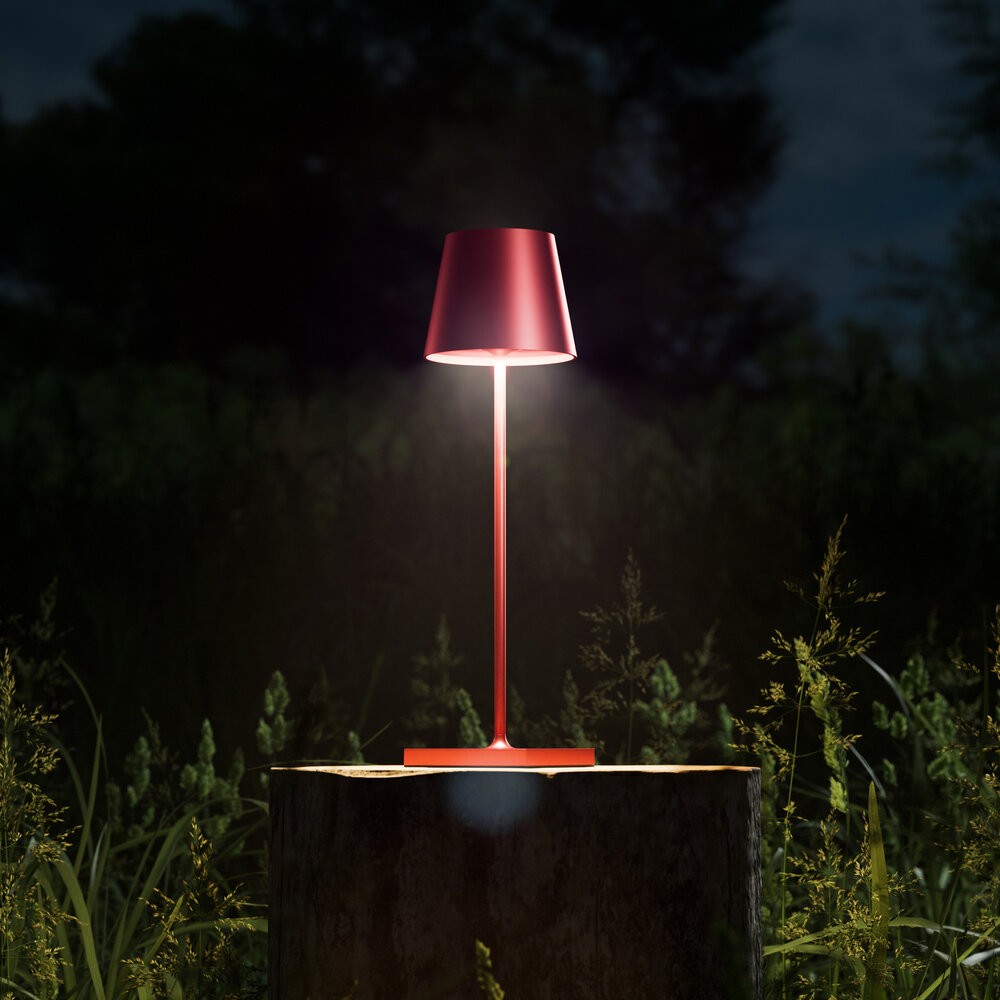 Innen & Außen: Die dimmbare Akku-Tischleuchte für den Wohn- und Außenbereich hält dank hoher Schutzart IP54 (spritzwassergeschützt) auch mal einem Regenschauer stand.
