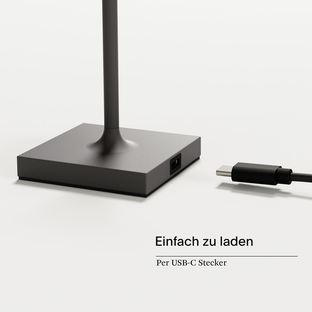 Wiederaufladbar: Mit dem beiliegenden USB-C Ladekabel lässt sich die Akkuleuchte bequem und unkompliziert aufladen. So leuchtet sie bis zu 7 Stunden und das ganz ohne Kabel (Akku Li-Ion, 1.500 mAh).