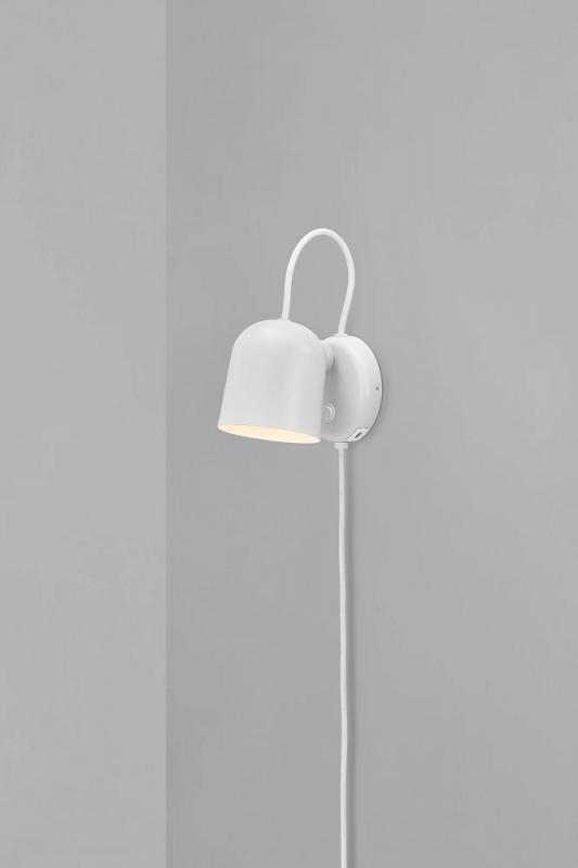Die Wandleuchte Angle der dänischen Designerin Maria Berntsen bietet ein modernes und zeitloses Design, das sich perfekt als Nebenbeleuchtung oder zur Beleuchtung des Badezimmerspiegels eignet. Die Lampe mit ihrem verspielten und interaktiven Design verfügt über einen magnetisch befestigten Lampenschirm, den Sie leicht an Ihre Bedürfnisse anpassen können. Sie können den Lampenschirm für ein gerichtetes oder indirektes Licht drehen, neigen oder nach Belieben bewegen. Seitlich findet sich ein USB-Ladeanschluss, der eine praktische Auflademöglichkeit für Ihr Telefon oder ein anderes Gerät bietet.