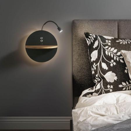 Die Nachttischlampe ist eine funktionelle, an der Wand montierte LED-Leselampe mit dem zusätzlichen Bonus einer dimmbaren und schaltbaren Hintergrundbeleuchtung.