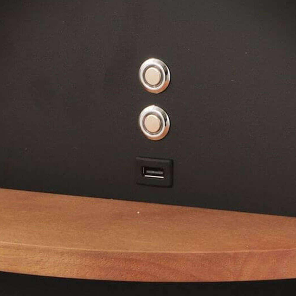Das Design ist schlank und modern, mit einem schwarzen Metallrahmen und einer Ablage aus Eichenholz. Das Regal aus Massivholz eignet sich perfekt zur Aufbewahrung oder zum Ausstellen Ihrer Lieblingsstücke. Außerdem verfügt es über einen USB-Ladeanschluss, so dass Sie Ihr Handy ganz einfach aufladen können, während Sie im Bett lesen!