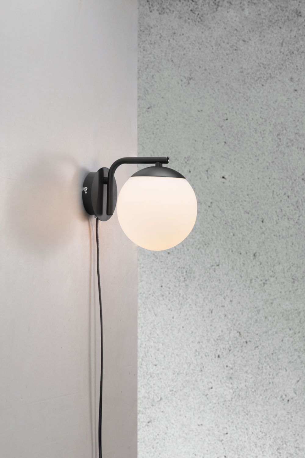 Schlichtheit und Eleganz bilden bei der Grant Innenwandleuchte ein perfektes Gleichgewicht. Die besonders schöne - mit dem bei uns optional erhältichen E14 Leuchtmittel - leuchtende opalweiße Glaskuppel wird vom schwarzen Metall umschlossen, was für eine vollendete und dekorative Einheit sorgt. Zugleich entspricht Grant durch die Verwendung von schwarzem Metall und Opalglas den aktuellen Designtrends. Der mattierte Glasschirm sorgt für ein blendfeies Licht in den Innenräumen. Ein äußerst praktisches Element stellt der flexible Stromanschluss über ein Kabel mit Stecker und Schalter dar.