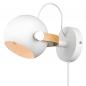 DC Wandleuchte aus Metall mit Holzdekor aus Echtholz.