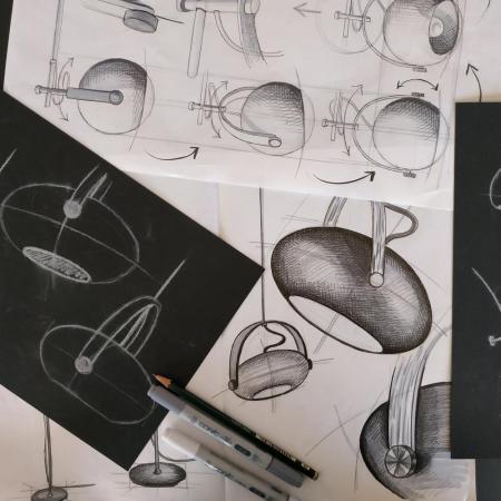 DC verbindet skandinavischen Minimalismus mit industriellem Look. Mit ihrer organischen Formensprache und dem schlichten Design fügt sich die Leuchte perfekt in die meisten Wohnräume ein. Die leuchtende Oberfläche des Lampenschirms und die runden, weichen Rundungen aus Eichenholz verleihen der Leuchte einen modernen Ausdruck. Die feinen Aluminiumdetails runden das Design ab.