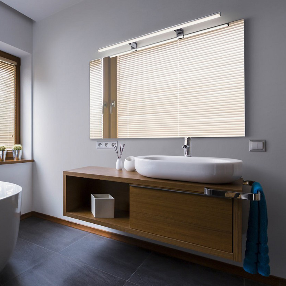 | Features | inkl. Zubehör für Wand-, Spiegel- oder Möbelaufbaumontage, mit Fernbedienung dimmbar und Lichtfarbe einstellbar von 2700 K (warmweiß) bis 6000 K (tageslichtweiß) |