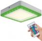 Die LED-Leuchte zur Wandmontage zeichnet sich durch ihr funktionsorientiertes flaches Design aus. Die Lampe beleuchtet den Raum in einer wählbaren Lichtfarbe. Die Farbe als auch die Helligkeit der Wandlampe sind über eine im Lieferumfang enthaltene Fernbedienung einstellbar.