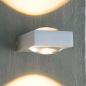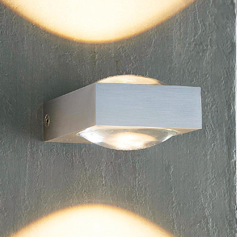 Zwei Glas Halbkugeln, eingearbeitet in solidem Metall, streuen das warmweiße Licht und werfen es stilvoll an die Wand nach oben und unten.
