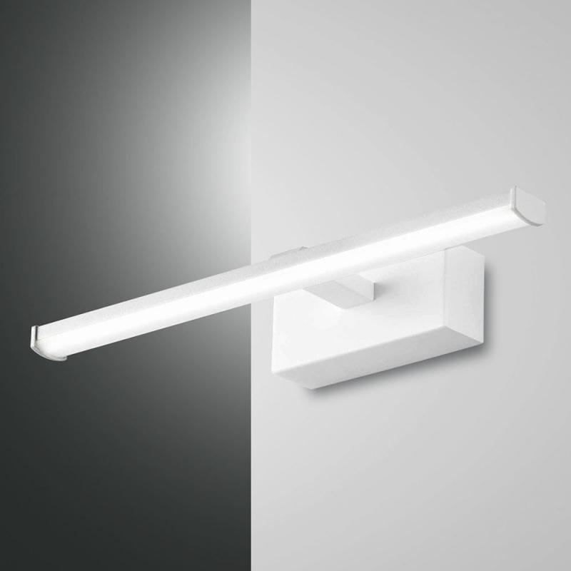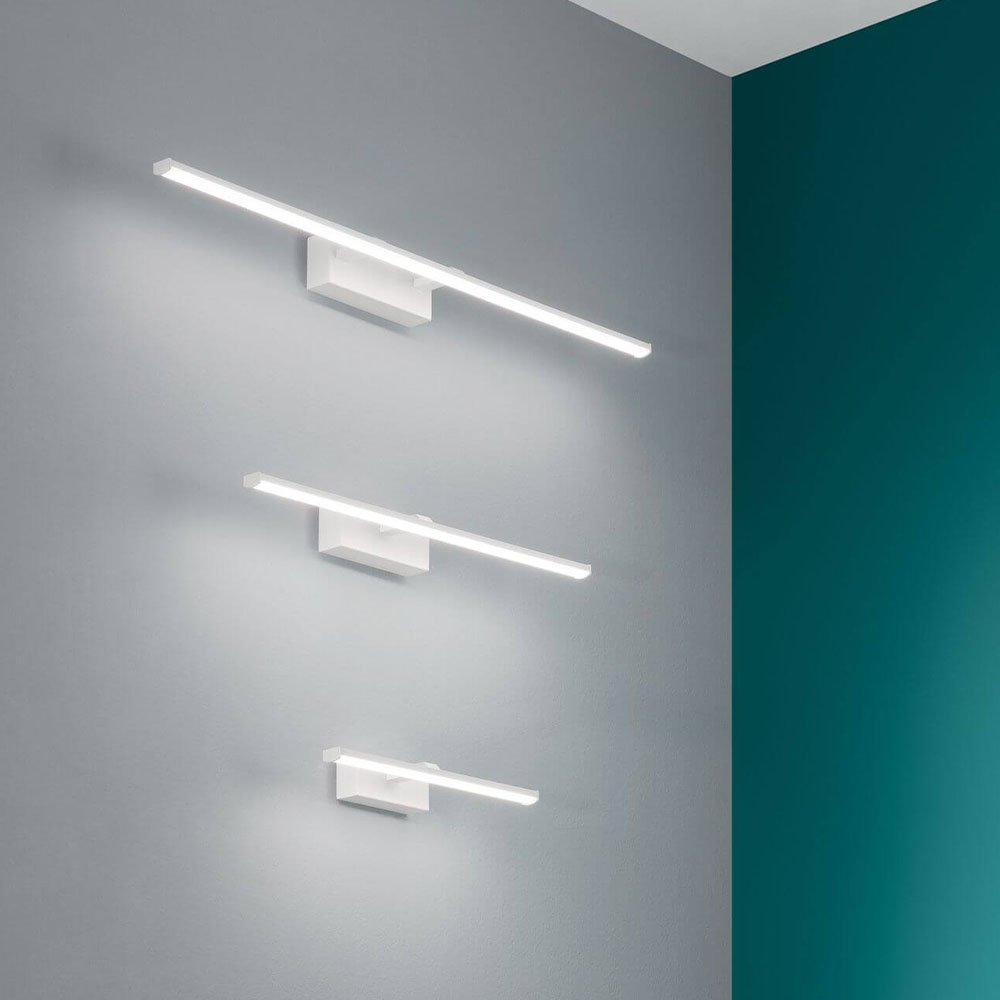Nala ist eine moderne LED-Wandleuchte mit einer rechteckigen Wandhalterung, die über einen Arm eine Leiste trägt, deren Unterseite mit einem matten Diffusor aus Methacrylat besetzt ist. Die im Inneren befindlichen spritzwassergeschützten LEDs leuchten die gesamte Breite der Leuchte aus und sorgen so für warmweißes Licht auf Bildern, Spiegeln, Waschbecken oder darunter liegenden Arbeitsflächen. Ebenfalls eignet sich Nala zur eleganten Zusazbeleuchtung im Flur.