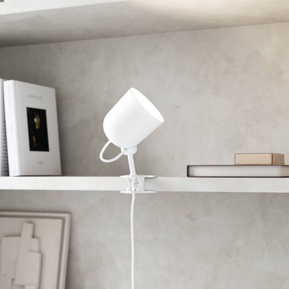 Die Angle-Serie der dänischen Designerin Maria Berntsen spricht eine moderne und zeitlose Designsprache. Diese Leuchte mit ihrem verspielten und interaktiven Design verfügt über einen magnetisch befestigten Lampenschirm, den Sie leicht an Ihre Bedürfnisse anpassen können. Sie können den Lampenschirm für ein gerichtetes oder indirektes Licht drehen, neigen oder nach Belieben bewegen. Die Leuchte besitzt zudem eine praktische Klemme, mit der Sie sie an einer Ablagefläche, einem Bücherregal oder überall dort befestigen können, wo Sie ausgewählte Details in Ihrer Inneneinrichtung hervorheben möchten.