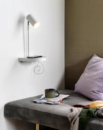 Cody ist eine multifunktionale Leuchte in einem kompakten, minimalistischen Design. Die praktische Ablage ist perfekt, um Ihre wichtigsten Utensilien griffbereit zu halten. Ein USB-Anschluss unter der Lampe erleichtert das Aufladen Ihres Telefons oder eines anderen Geräts. Sie können den Lampenkopf ganz einfach für ein praktisches, gerichtetes Licht verstellen.