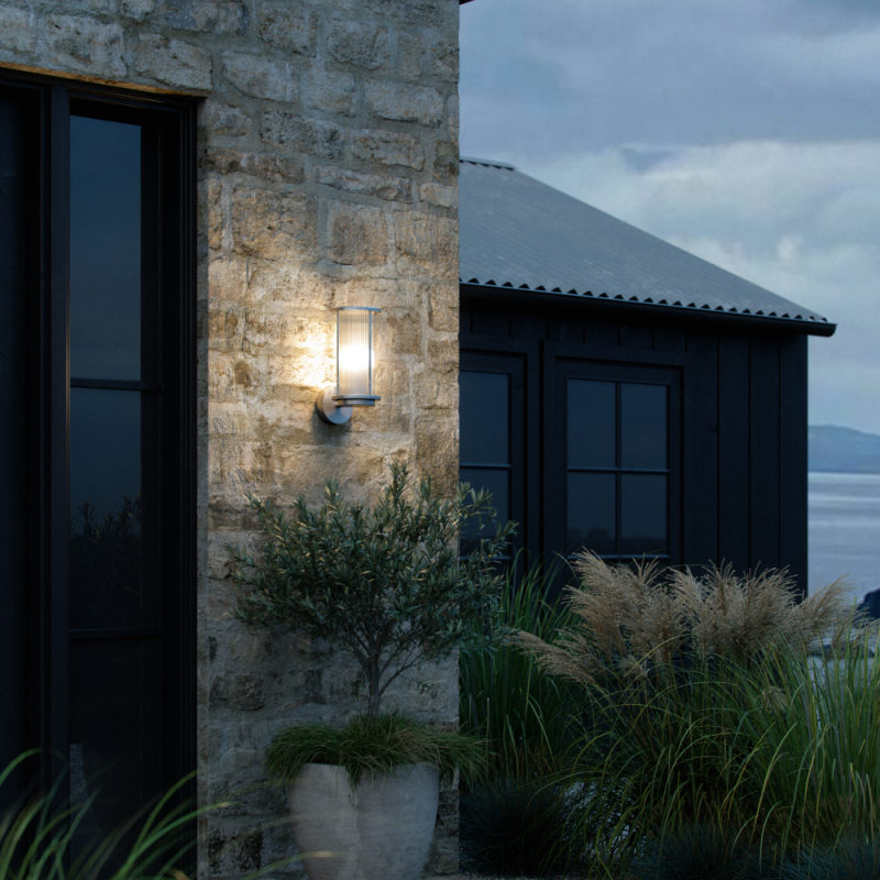 Die Linton-Serie des dänischen Designerduos Says Who bietet ein rundes und elegantes Design – mit starker Referenz zu einer klassischen Laterne. Der geriffelt ausgeführte Diffusor sorgt für ein behagliches, indirektes Licht, und der Lampenfuß aus verzinktem Stahl eignet sich auch gut für raue Wetterbedingungen. Die Wandleuchte schafft das perfekte Ambiente für Ihre Außenbereiche.