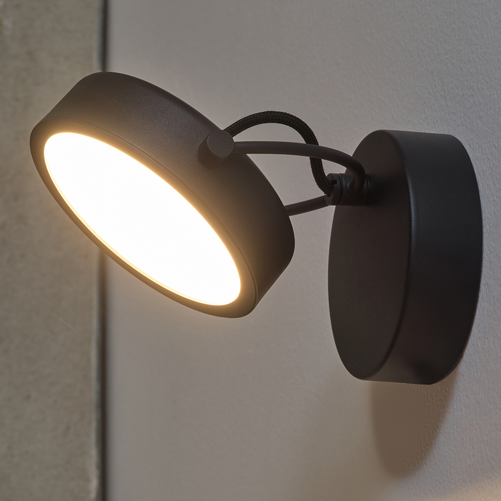 Osram Wandleuchte Decor Puck aus Stahl in Schwarz mit warmweißem Licht - 1,5 m Kabel mit Schalter/ EU-Stecker