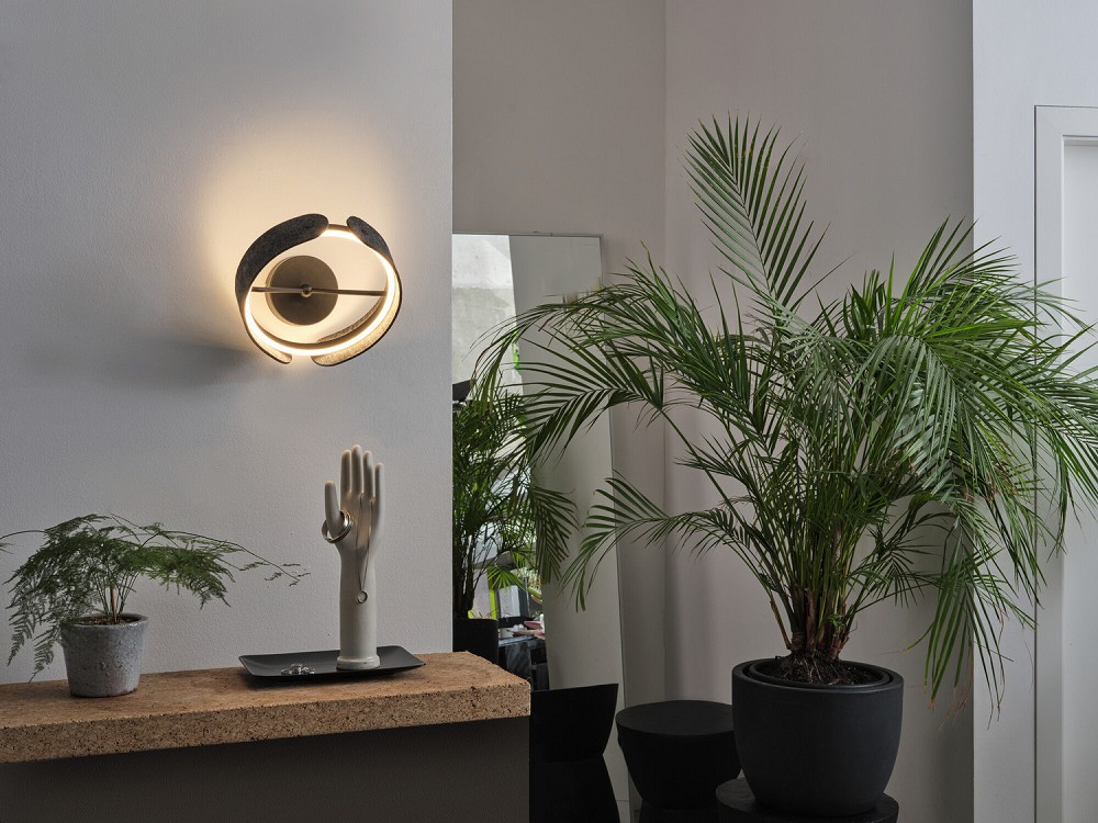 Preview: Osram Wandleuchte Decor Curve Felt in Dunkelgrau mit warmweißem Licht - Auffällige Leuchte aus Filz mit neigbarem Schirm