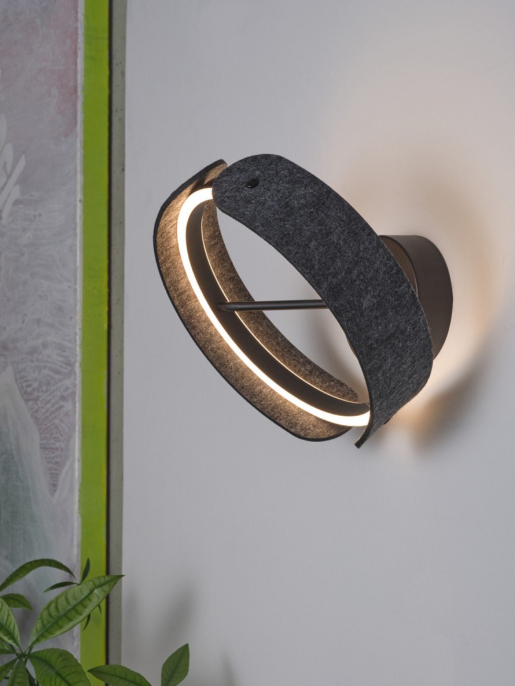 Osram Wandleuchte Decor Curve Felt in Dunkelgrau mit warmweißem Licht - Auffällige Leuchte aus Filz mit neigbarem Schirm